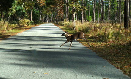 If the incredible scenery wasn’t enough to satisfy, wild animals greeted us around almost every turn. We saw the aforementioned deer including two we watched swim across the Wekiva River (flail and splash may be a better description). We saw more turkey (the feathered kind) than I could possibly count plus plenty of hawks, turtles, alligators, manatee, tarpon and water birds. Although we didn’t see them, otter and Florida black bear were also spotted on the trip.